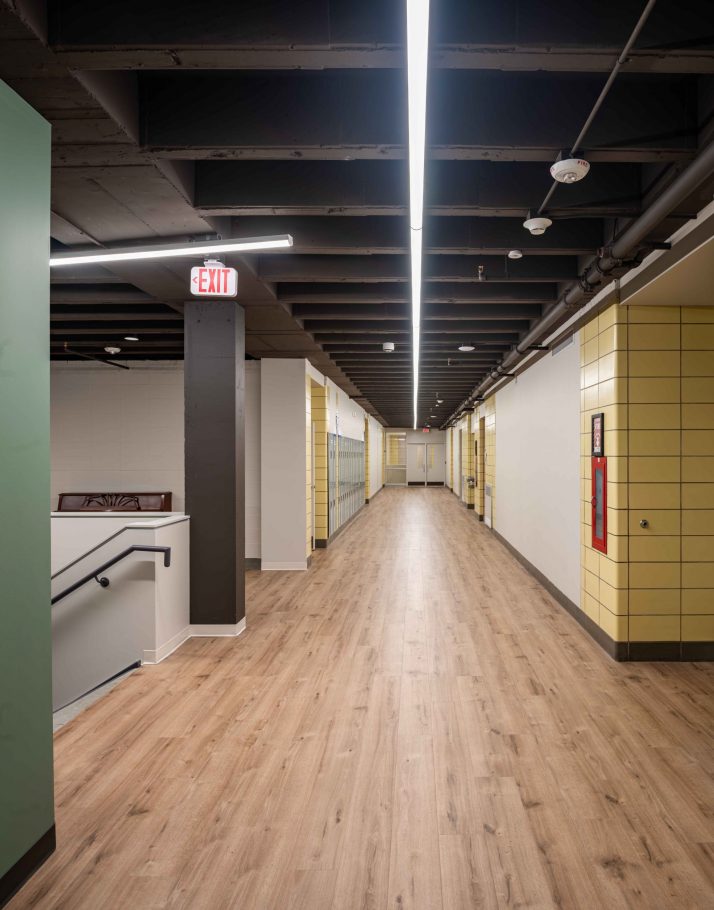 Its iconic mid-century concrete structure became the centerpiece of the interior design. Care was taken to thoughtfully design the MEP systems around this exposed structure to maintain the purity of the rhythm. Walls, plumbing, and electrical systems were selectively adapted for economy. With the existing 2nd floor programming remaining almost completely original at the classrooms. The exterior followed this approach, with only curtain wall systems and the roof membrane being replaced.