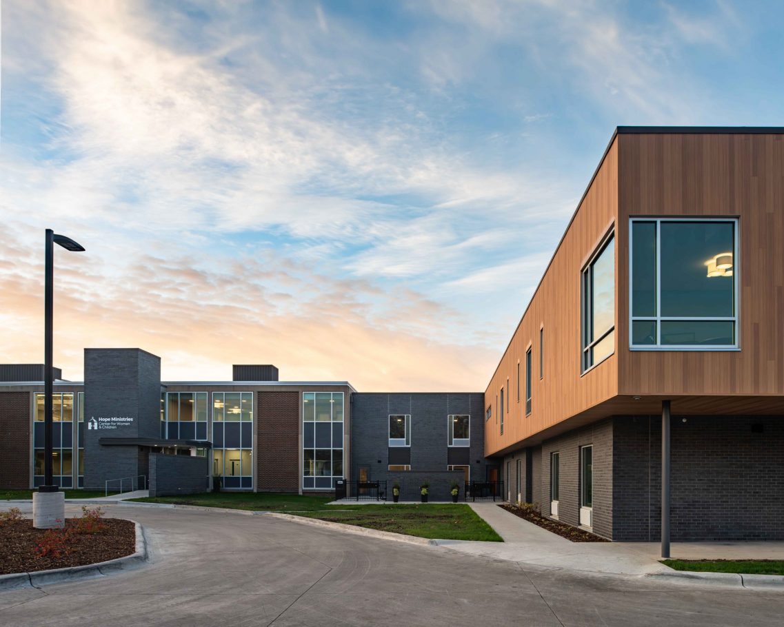 Materials and finishes were selected to create a calming residential environment and nod to the Hope Ministries color palette.