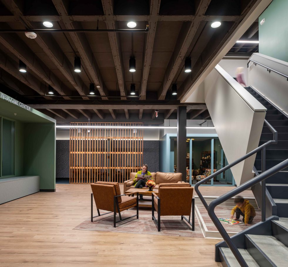 The Douglas Elementary building from 1965 helped make this project feasible; with good bones and existing interior programing that lent itself to the educational and client support spaces required by Hope Ministries.