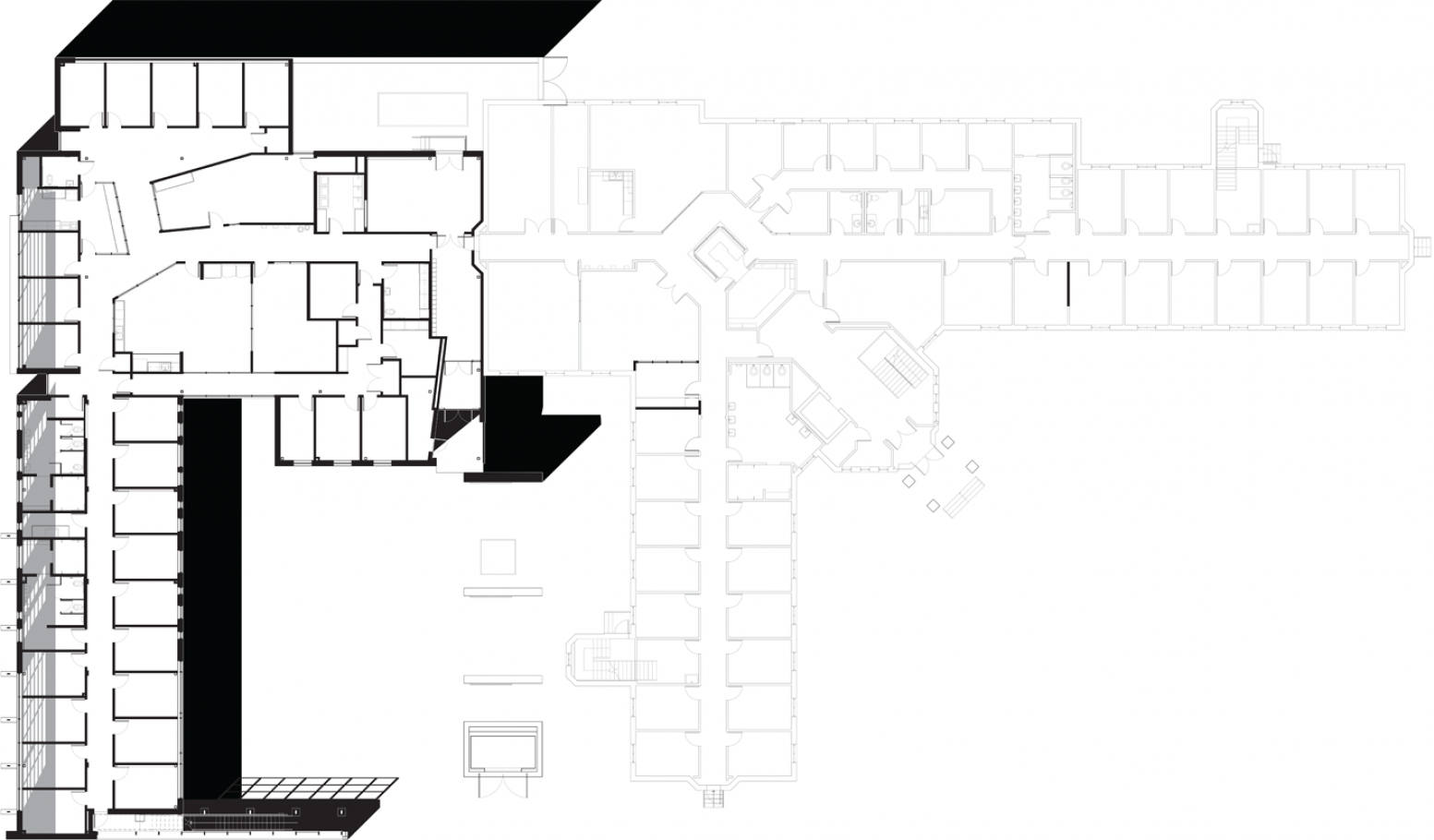 The two story building is oriented to the south of the current facility with a connection to the existing building. The new design was based upon respecting the existing facility’s aesthetic and operations. It mimics the existing building in program, plan and materiality, but simply states its more contemporary origins. An added benefit of its plan is the partial enclosure it creates for a courtyard that is used by the residents. Slated to be a LEED certified building, the design maximizes healthy and energy conserving day-lit spaces throughout.