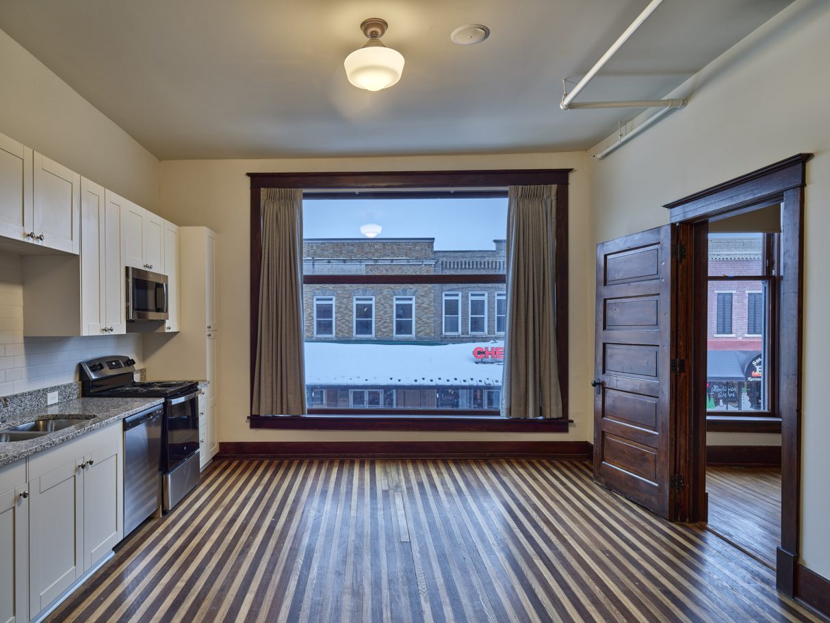 While being two distinctly separate buildings both in configuration and style, the structures had to be configured as one consolidated building for the purpose of complying with modern building codes. The ground floor at Main Street remains commercial space as it has been for over a century and a half. The upper floors have been converted to apartments in sizes and configurations respectful to maintaining nearly all existing walls and openings. The design was to serve as more of rehabilitation than an apologetic adaptive reuse…