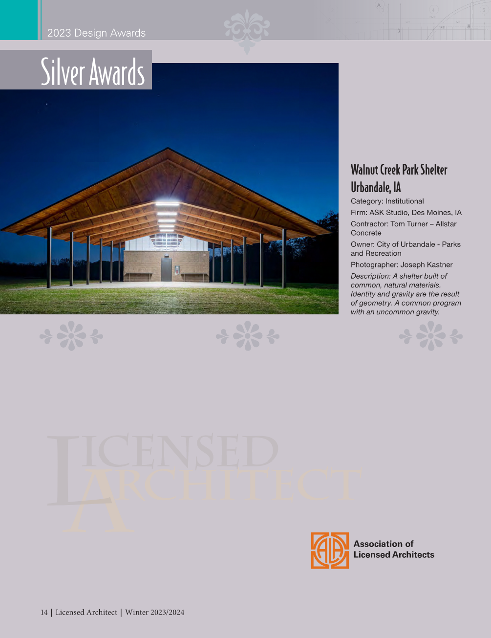 Licensed Architect Magazine: ASK Studio, "2013 Award Program"; Winter 2013